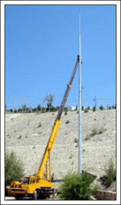 避雷塔常見有以下幾種規(guī)格:GFL角鋼避雷針塔、GJT圓鋼避雷針塔、GH鋼管桿避雷針塔等多種形式的金屬塔,右圖所示的就是GFL系列的角鋼避雷針塔。 避雷針塔的保護范圍還要按照滾球法來計算保護半徑和保護范圍。 GFL[1]避雷塔主要用于各種建筑的防雷工程,特別是煉油廠,加油站,化工廠,煤礦,炸藥庫,易燃易爆車間,更應該及時的安裝避雷塔,因氣候變化,雷電災害不斷加重,現(xiàn)在很多建筑都安裝避雷塔,特別是樓頂不銹鋼飾鐵塔,造形樣式多樣,外形美觀,設計新穎獨特,廣泛應用于各類大樓樓頂、廣場及小區(qū)的綠地等的建筑,使之與建筑物交相輝映,成為城市中標志性的裝飾建筑。避雷塔原理與避雷針一樣。減少雷電災害。避雷塔使用條件: 1、基本風壓:w0=0.4及0.7KN/m2兩種 2、抗震設防烈度:8度及小天8度地區(qū) 3、地基承載力:100及200 KN/m2 4、覆冰厚度: ≤10mm 5、垂直度:≤1/1000避雷塔設計依據(jù):1、建筑物防雷設計規(guī)范(GB50057-94) 2、高聳結(jié)構設計規(guī)范(GBJ135-90) 3、鋼結(jié)構設計規(guī)范(GB50017-2003) 4、塔桅鋼結(jié)構施工及驗收規(guī)程(CECS 80:2006)避雷塔制作、安裝 1.所有金屬部件必須鍍鋅,操作時注意保護鍍鋅層。 2.采用鍍鋅鋼管管制作針尖,管壁厚度不得小于3mm,針尖刷錫長度不得小于70mm 3.避雷塔應垂直安裝牢固。垂直度允許偏差為3/1000。 4.焊接要求焊接應采用搭接焊,其搭接長度必須符合下列規(guī)定: 5.扁鋼為其寬度的2倍(且至少3個棱邊焊接)。 6.圓鋼為其直徑的6倍。 7.圓鋼與扁鋼連接時,其長度為圓鋼直徑的6倍。 8.避雷塔一般采用圓鋼或鋼管制成,其直徑不應小于下列數(shù)值: a獨立避雷塔一般采用直徑為19mm鍍鋅圓鋼。 b屋面上的避雷塔采用直徑25mm鍍鋅鋼管。 c水塔頂部避雷塔采用直徑25mm或40mm的鍍鋅鋼管 d煙囪頂上避雷塔采用直徑25mm鍍鋅圓鋼或直徑為40mm鍍鋅鋼管e避雷環(huán)用直徑12mm鍍鋅圓鋼或截面為100mm2鍍鋅扁鋼,其厚度應為4mm. 9 避雷塔宜采用圓鋼或焊接鋼管制成,其直徑不應小于下列數(shù)值:針長1m以下:圓鋼為12mm、鋼管為20 mm 、針長1-2m:圓鋼為16mm、鋼管為25mm、煙囪頂上的針:圓鋼為20 mm、鋼管為40 mm |