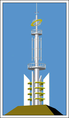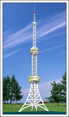 在塔的上端安有國產(chǎn)雷電接閃器或進(jìn)口提前放電器避雷針,以有效的保護(hù)建筑物不被雷擊。