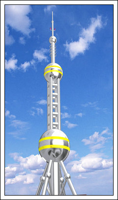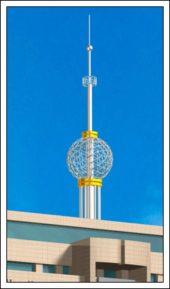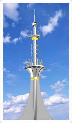 裝飾塔又叫工藝塔或不銹鋼塔多建于樓頂之上,它集避雷,通訊,裝飾于一體,塔體內(nèi)部材料主要采用角鋼、鋼管結(jié)構(gòu),其材質(zhì)為普通碳素鋼符合Q235型鋼,塔體外包不銹鋼板。