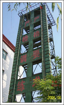 消防訓(xùn)練塔介紹:根據(jù)(1981年3月 公安部發(fā)布 1981年10月1日起實行)消防站建筑設(shè)計標(biāo)準(zhǔn)《gnj1-81 》之第六章 建設(shè)消防訓(xùn)練塔的要求及制作標(biāo)準(zhǔn)附:第601條 消防站內(nèi)應(yīng)設(shè)置訓(xùn)練塔,其正面應(yīng)設(shè)有長度不小于35米的跑道!〉602條 訓(xùn)練塔應(yīng)符合下列要求:一、訓(xùn)練塔宜設(shè)在靠近訓(xùn)練場盡端的部位; 二、訓(xùn)練塔層數(shù)應(yīng)不少于四層,高層建筑物較多的城市,層數(shù)可適當(dāng)增加; 三、訓(xùn)練塔正面的窗口每層不少于兩個,窗間墻的寬度為1.0米; 四、訓(xùn)練塔窗口的尺寸為1.2米×1.8米,窗口距離塔邊不得小于0.65米,窗臺寬為0.4米(突出塔壁5厘米),每層窗臺距該層地面的高度為0.8米,層高為3.5米,并應(yīng)設(shè)有凈寬不小于0.7米的內(nèi)樓梯;五、在訓(xùn)練塔每層內(nèi)側(cè)應(yīng)設(shè)置不小于1.5米寬的平臺,頂層應(yīng)設(shè)置樓板; 六、訓(xùn)練塔宜設(shè)置室外消防梯。消防梯應(yīng)通至塔頂,并宜離地面3米高處設(shè)起,寬度不宜小于50厘米。)消防訓(xùn)練塔產(chǎn)品說明:多功能消防訓(xùn)練塔,主要由(1)模擬窗、(2)樓層隔板、(3)后骨架、(4)了望、指揮平臺骨架及主體鋼結(jié)構(gòu)框架等組成。在塔體前端部位設(shè)有八個模擬窗(根據(jù)需要定做幾層幾窗口),在上、下相鄰的模擬窗之間設(shè)有樓層隔板(鋼板)。2,在塔體后部下方設(shè)有與模擬窗相對應(yīng)的后骨架。3,模擬窗與樓層隔板以及后骨架及主體框架相互之間用螺栓連接為一體,4,層與層之間均有安全樓梯連接。5,塔體上部裝有了望、指揮平臺。6,根據(jù)需要可安裝測風(fēng)儀、涼水帶架和警報器等。7,根據(jù)需要,在消防訓(xùn)練塔旁邊可制作模擬消防訓(xùn)練井。8,消防訓(xùn)練塔設(shè)備同時還配備消防專用滑輪、滑竿、模擬墻等附屬設(shè)施。本訓(xùn)練塔結(jié)構(gòu)科學(xué)、操作安全、使用方便,產(chǎn)品防腐處理熱鍍鋅或熱噴涂處理,50年無需維護(hù),安全可靠。具有消防訓(xùn)練、了望、測風(fēng)、報警等多種功能。同時便于指揮長隨時掌握消防官兵的動作要領(lǐng)。是目前武警消防官兵消防訓(xùn)練實戰(zhàn)演習(xí)之必備設(shè)備。同時替代了過去磚混結(jié)構(gòu)消防樓的歷史。