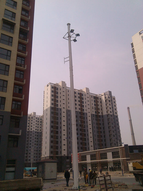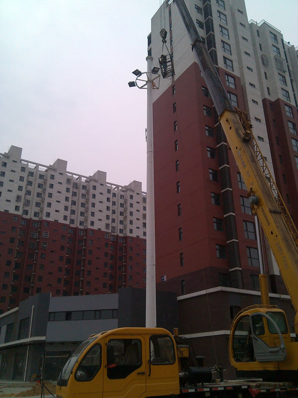 結(jié)構(gòu)特點: 塔身結(jié)構(gòu):塔身為等邊角鋼結(jié)構(gòu),全螺栓連接,便于運輸及現(xiàn)場安裝。塔身及零部件全部采用熱鍍鋅防腐處理。截面為正方形,分0.6m、0.9m1.0m三大系列,塔高為16.5 - 40m,可供用戶選用,抗風(fēng)等級分別有50kg/M2和80kg/m2兩種,塔身底部設(shè)防護門。 升降燈架:由升降架和燈具架組成,角鋼焊接,配有定位裝置及8個包角輪。升降架形式多樣,能適應(yīng)各種場地照明要求,主要有方形、圓形、多邊形、一字形等,亦可根據(jù)用戶的要求設(shè)計造型。 升降系統(tǒng):由手搖把、支架、滑輪箱、減速機、電動機、離合器、平衡砣等組成,具有升降自如、平穩(wěn)、安全、省力等特點。 轉(zhuǎn)向系統(tǒng):由手搖把、轉(zhuǎn)動輪、轉(zhuǎn)盤等組成,在下面安裝時燈盤與鐵軌平行,升至頂部可通過手搖將燈盤旋轉(zhuǎn)90°與鐵軌垂直。(轉(zhuǎn)臂式燈塔) 電氣裝置:由電器箱、配線管及接地裝置組成,電源采用380V三相四線引入配電箱,塔頂設(shè)避雷針,利用塔身作為接地引入地線,接地電阻不大于10Ω。 照明控制:可近控、遠(yuǎn)控,亦可分半夜燈、全夜燈、光控、時控等多種控制方式。 其他:由于塔身采用積木式安裝技術(shù),使該系列燈塔具有向多功能發(fā)展的優(yōu)勢,可根據(jù)用戶的特殊要求在滿足照明要求的基礎(chǔ)上增設(shè)其他功能,如避雷針式投光燈塔、升降式無線發(fā)射塔等,一塔多用有利于用戶節(jié)省投資。